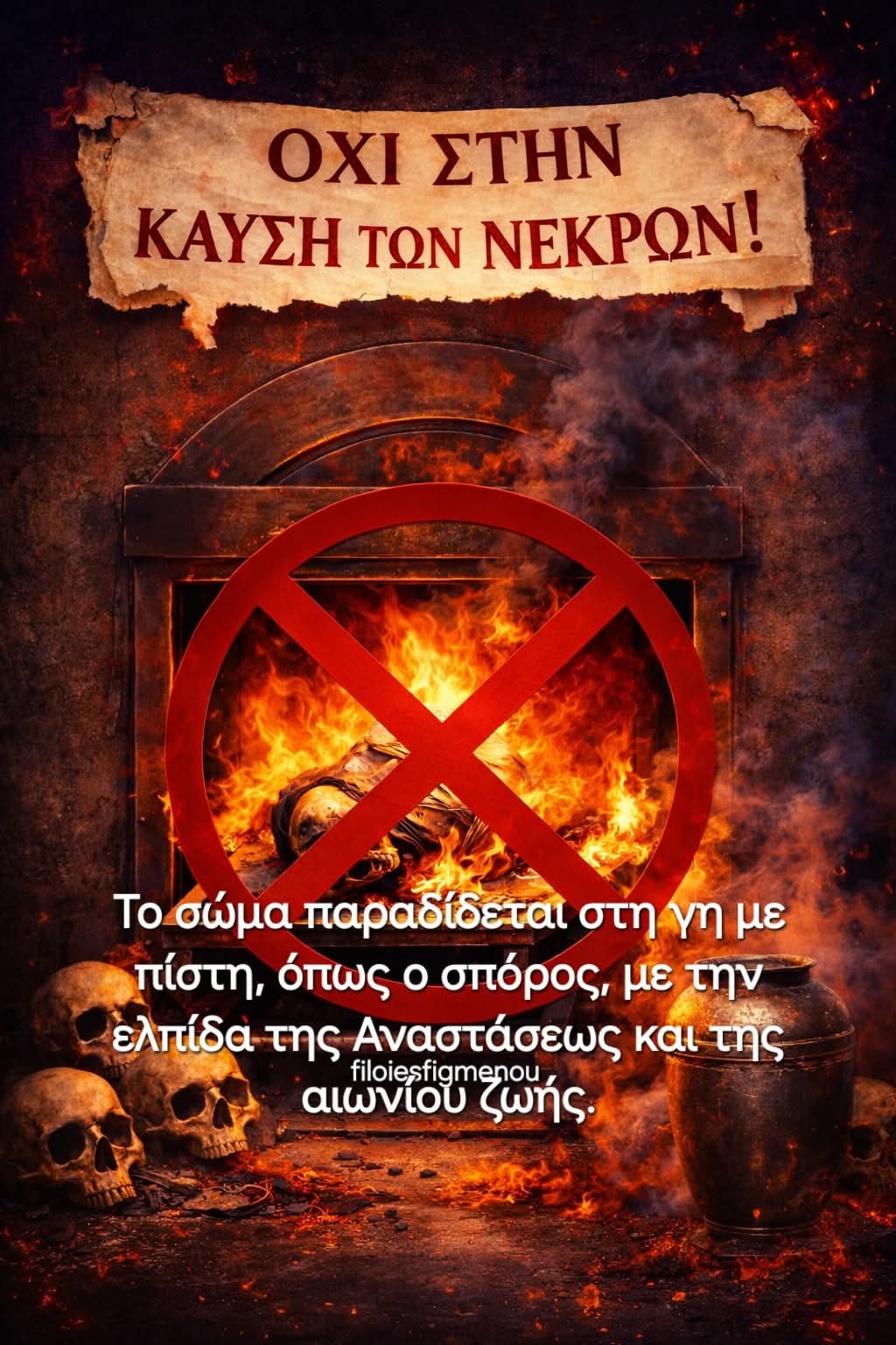 Η στάση της Ορθόδοξης Εκκλησίας απέναντι στην καύση των νεκρών δεν είναι προϊόν κοινωνικής συνήθειας ούτε νομικής αυστηρότητας. Είναι καρπός πίστεως, εμπειρίας και μακραίωνης παράδοσης, που βλέπει τον άνθρωπο ενιαίο, ψυχή και σώμα, δεμένο με το μυστήριο της Αναστάσεως.