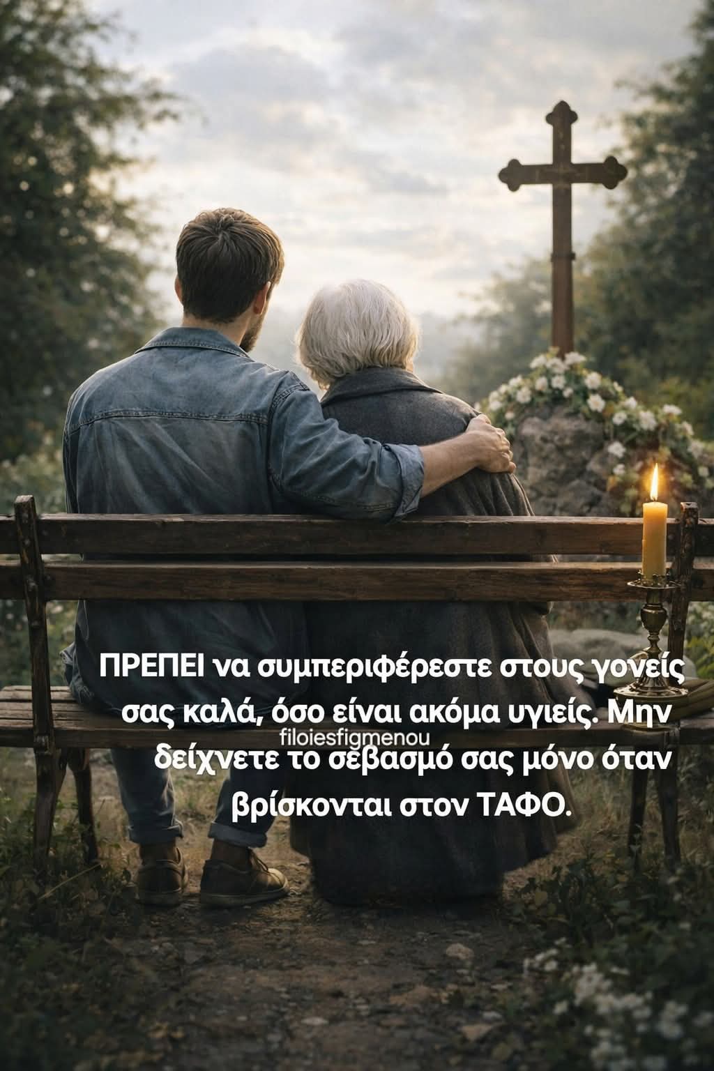 Η ζωή συχνά μας διδάσκει όχι με λόγια αλλά με εικόνες που χαράζονται βαθιά στην καρδιά. Ο σεβασμός και η αγάπη προς τους γονείς δεν είναι πράξη για το τέλος αλλά στάση καθημερινή όσο ακόμη αναπνέουν όσο ακόμη ακούν τη φωνή μας και αισθάνονται την παρουσία μας. Μην αφήνετε την αγάπη να γίνεται στεφάνι στον τάφο και να λείπει από το σπίτι. Τιμήστε τους γονείς σας με έργα όσο είναι υγιείς γιατί τότε έχει νόημα τότε θεραπεύει τότε φωτίζει. Όπως μας υπενθυμίζει η Εκκλησία η εντολή της τιμής προς τους γονείς δεν δόθηκε για τη μνήμη αλλά για τη ζωή και η ευλογία κατοικεί εκεί όπου η αγάπη δεν αναβάλλεται.