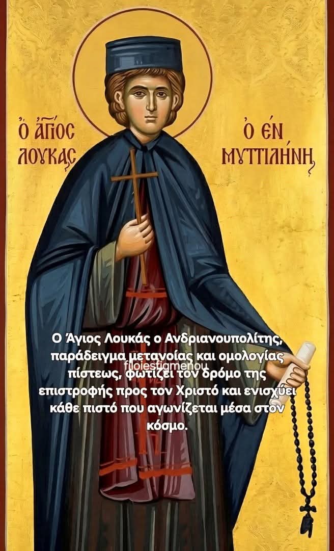 Ο Άγιος Λουκάς ο Ανδριανουπολίτης, παράδειγμα μετανοίας και ομολογίας πίστεως, φωτίζει τον δρόμο της επιστροφής προς τον Χριστό και ενισχύει κάθε πιστό που αγωνίζεται μέσα στον κόσμο.