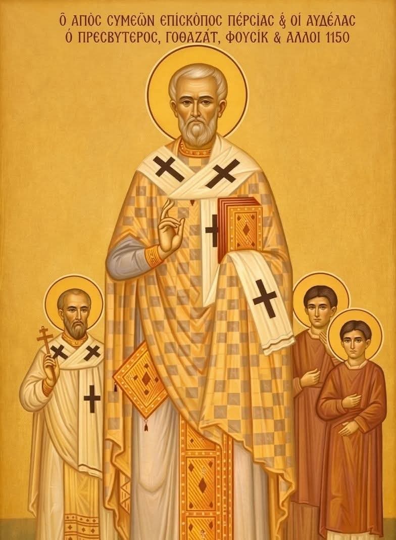 Πέμπτη 17 Απριλίου κατά το ορθόδοξο εορτολόγιο, εορτάζει ο Άγιος Συμεών επίσκοπος Περσίας και οι μαρτυρήσαντες μαζί μ' αυτόν