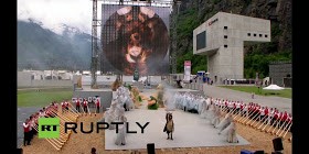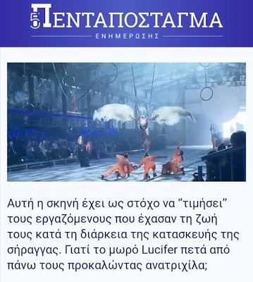 Όλοι μαζί στα εγκαίνια, και από πάνω τους στην τελετή ο τράγος, με σημαδιακό επίσης το στοιχείο πως χάθηκαν 9 άνθρωποι εργάτες κατά την κατασκευή του, που είναι και ίδιος ο επιτρεπτός αριθμός στις Εκκλησίες.