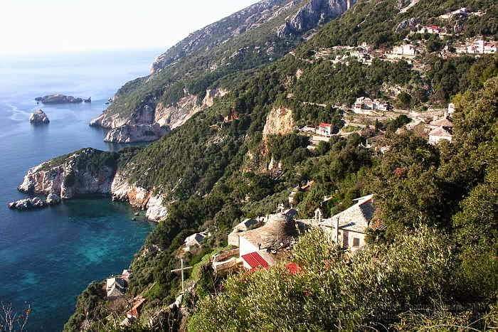 Αι καλύβαι της Σκήτεως είναι εγκατεσπαρμέναι εν μέσω των δυσπροσίτων βράχων ωσάν φωλεαί αετών, άνωθεν των οποίων υψούται ο ουρανοκατασκεύαστος Άθως με την υπερνεφή κορυφήν του.