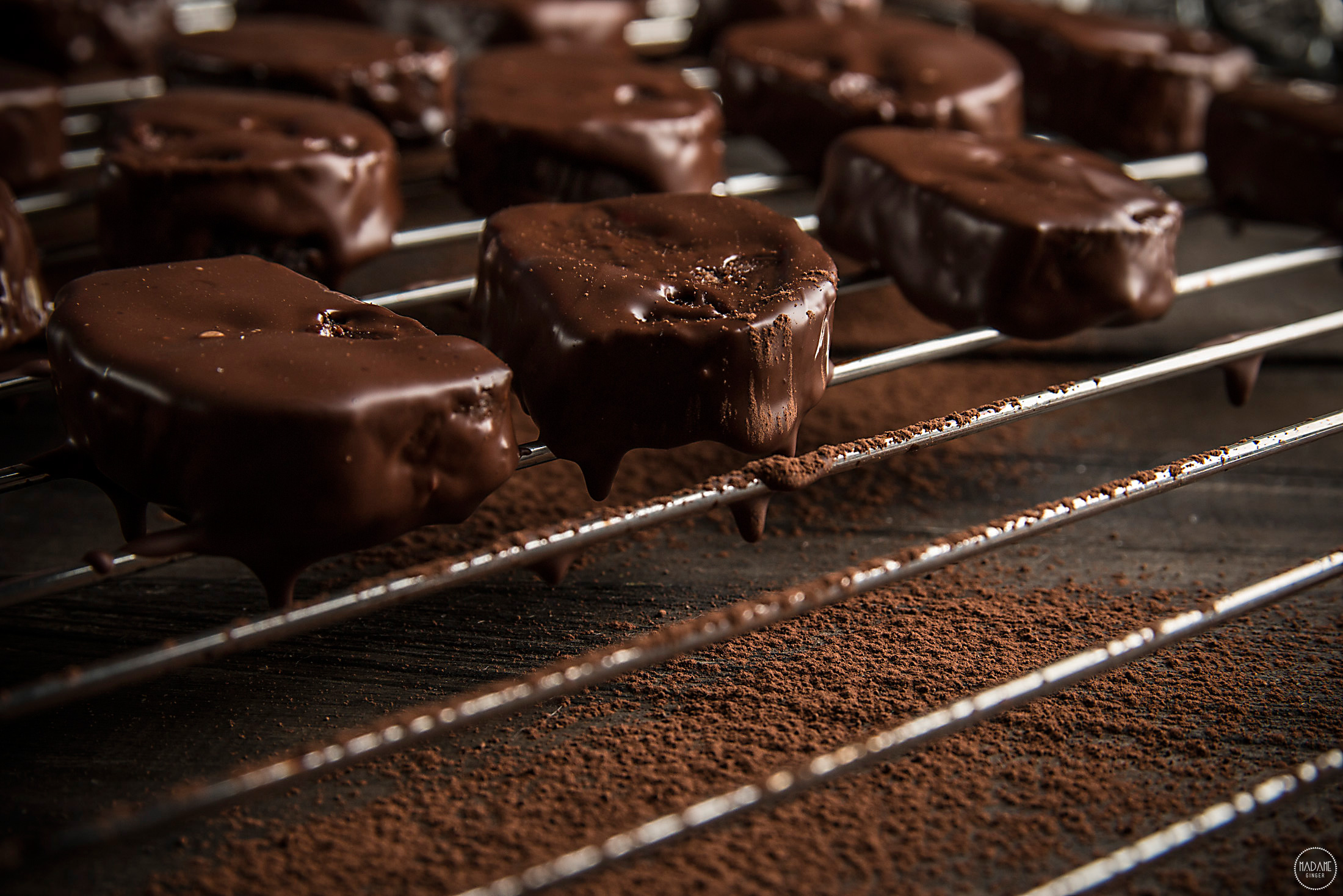 • Πλάθουμε τις καριόκες σε μέγεθος της αρεσκείας μας και τις βουτάμε στη λιωμένη σοκολάτα. Προαιρετικά τις πασπαλίζουμε με επιπλέον καρπούς γκότζι μπέρι.