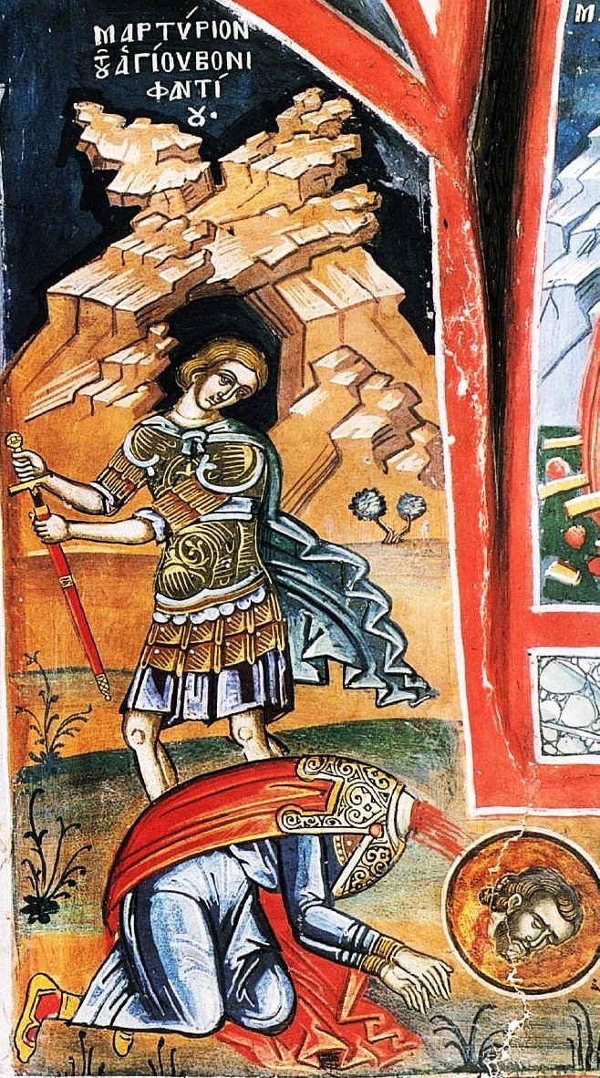 Ἐννεακαιδεκάτῃ Βονιφάτιος αὐχένα τμήθη.