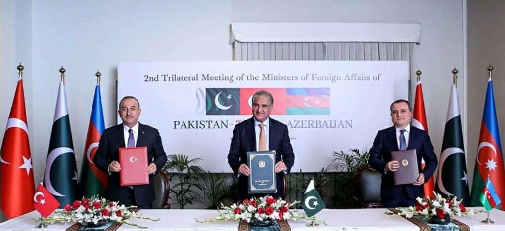 Ενώ η Ελλάδα βρίσκεται σε συνεννόηση με Κύπρο, Ισραήλ, Αίγυπτο ΗΑΕ κ.α. στην Ανατολική Μεσόγειο, η Τουρκία δεσμεύτηκε μαζί με το Αζερμπαϊτζάν και το Πακιστάν δεσμεύτηκαν να υποστηρίξουν ο ένας τον άλλον στις διάφορες εδαφικές διεκδικήσεις και αξιώσεις που προβάλλει η κάθε χώρα στο περιφερειακό της σύστημα, άρα απί την πλέυρά της Τουρκίας και στο Αιγαίο ή την Ανατ. Μεσόγειο!!!