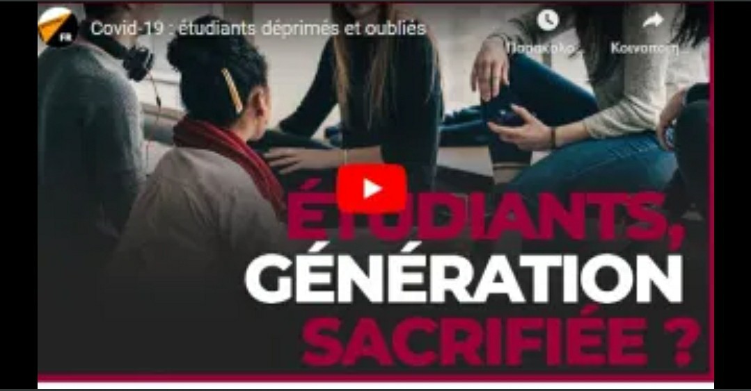 Η εξ αποστάσεως σε .. στέλνει; Φοιτητές πηδάνε από τα παράθυρα στη Γαλλία. Πολλαπλές αυτοκτονίες φοιτητών λόγω διαχείρισης υγειονομικής κρίσης. 1/2 φοιτητές πάσχει από ψυχική καταρράκωση..Οι Φοιτητικοί Σύλλογοι ζητούν ν΄ανοίξουν τα Πανεπιστήμια..Ο Δρ. Patrice Schoendorff, ψυχίατρος:έκρηξη ψυχικών διαταραχών….