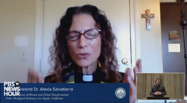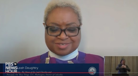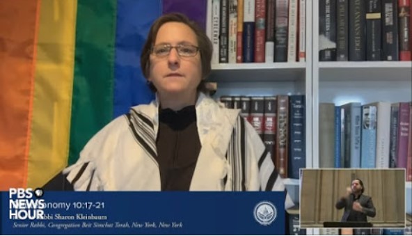 Αμέσως μετά, εμφανίστηκε μπροστά από μια μεγάλη σημαία ουράνιου τόξου, η λεσβία Ραβίνος Sharon Kleinbaum η οποία μοιράστηκε μια ανάγνωση από το Δευτερονόμιο, συμπεριλαμβανομένου ενός αποσπάσματος που αναφέρεται στους Ισραηλίτες που καλωσορίζουν τους ξένους. Μια δεύτερη γυναίκα ραβίνος, η Sharon Brous, είπε ότι «εν μέσω της πανδημίας, στη σκιά της βίαιης εξέγερσης, υψώνουμε την αρχαία εβραϊκή υπόσχεση ότι μετά από τη μακρά νύχτα της ταλαιπωρίας, θα έρθει μια λυτρωτική αυγή» πριν προσθέσει ότι «βρισκόμαστε τώρα στο σημείο καμπής μεταξύ αυτής της δακρυσμένης νύχτας και της χαρούμενης νέας ημέρας».