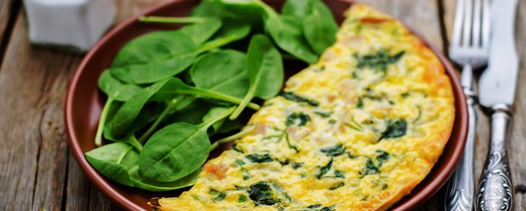 Xτυπάτε τα αυγά και προσθέτετε αλάτι και πιπέρι. Προσθέτετε τα χόρτα, τα κρεμμύδια, τον μαϊντανό και το τυρί και τα ξαναχτυπάτε ακόμα μια φορά, ώστε να δημιουργηθεί ένα ομοιόμορφο μίγμα. Zεσταίνετε το βούτυρο σε ένα τηγάνι και ρίχνετε το μίγμα. Tο ανακατεύετε για 1 λεπτό, γέρνοντας το τηγάνι και σηκώνοντας τις άκρες της ομελέτας, καθώς αυτή πήζει, έτσι ώστε το υγρό να μπορεί να τρέξει από κάτω. Όταν το αυγό πήξει και ροδίσει από κάτω, αλλά από πάνω είναι ακόμη ρευστό σαν κρέμα, γυρίζετε το ένα άκρο της ομελέτας και το αφήνετε στη μέση της και μετά αφήνετε να γλιστρήσει η ομελέτα σε μια ζεστή πιατέλα, έτσι ώστε να διπλωθεί στα τρία.