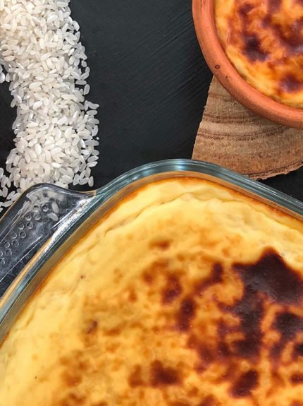 Μία διαφορετική συνταγή για ρυζόγαλο, που ψήνεται στο φούρνο και αποκτάει λαχταριστή ροδοκόκκινη κρούστα.