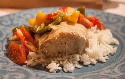 Ψήνουμε για 1/2 ώρα σε δυνατό φούρνο και σερβίρουμε με αρωματικό ρύζι.