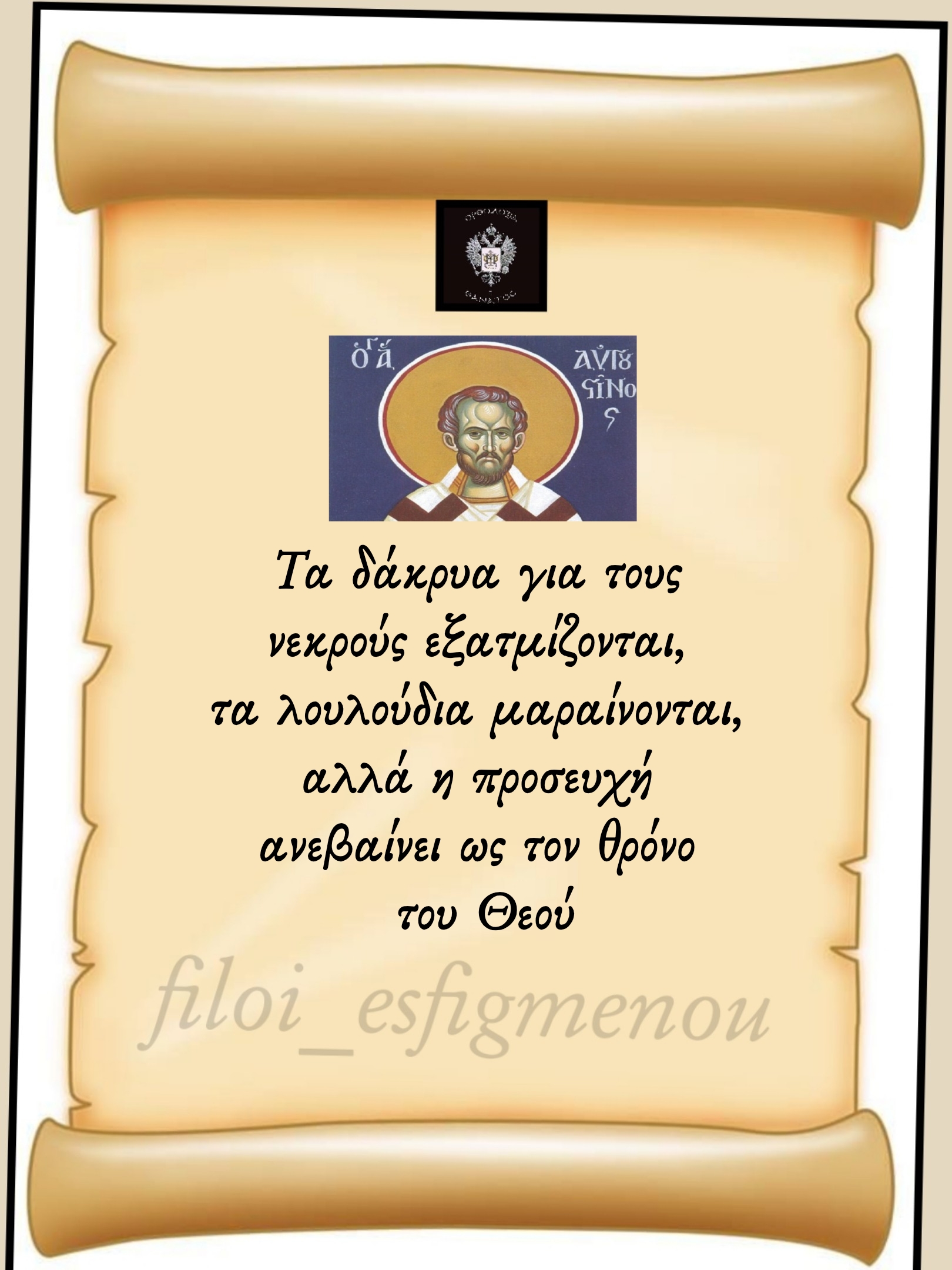Αγαπητοί φίλοι της σελίδας, παρακαλούμε να είστε ευγενικοί και κόσμιοι στις εκφράσεις σας, με σεβασμό, κατανόηση και αξιοπρέπεια, προς τους συνανθρώπους μας, όπως αρμόζει σε λογικούς ανθρώπους, αλλά και σε ενσυνείδητους Χριστιανούς οι οποίοι κάνουν πράξη τον Ευαγγελικό λόγο, «Αγαπάτε αλλήλους». Φυλάξτε το στόμα σας, από λόγια περιττά, πικρόχολα, ανώφελα, ασκηθείτε στην προσευχή του Ιησού, εγκρατευθείτε και ο Κύριος θα σας περιβάλλει με το ανεκτίμητο δώρο της αγάπης Του. Οι απόψεις της ιστοσελιδας μπορεί να μην ταυτίζονται με τα περιεχόμενα του άρθρου. Τα άρθρα που δημοσιεύονται εδώ, ουδεμία ευθύνη εκ του νόμου φέρουμε καθώς εκφράζουν αποκλειστικά τις απόψεις των συντακτών τους και δεν δεσμεύουν με οποιοδήποτε τρόπο την ιστοσελιδα. Οι διαχειριστές της ιστοσελιδας δεν ευθύνονται για τα σχόλια και τους δεσμούς που περιλαμβάνει. Κάθε γνώμη είναι σεβαστή, αρκεί να αποφεύγονται ύβρεις, ειρωνείες και προσβλητικοί χαρακτηρισμοί, γενικά και εναντίον των συνομιλητών ή των συγγραφέων. Μην δημοσιεύετε άσχετα σχόλια με το θέμα. Με βάση τα παραπάνω με λύπη θα αναγκαζόμαστε να διαγράφουμε τα απρεπή και βλάσφημα σχόλια τα οποία δεν αρμόζουν στον χαρακτήρα και στο ήθος της σελίδας μας χωρίς καμία άλλη προειδοποίηση.