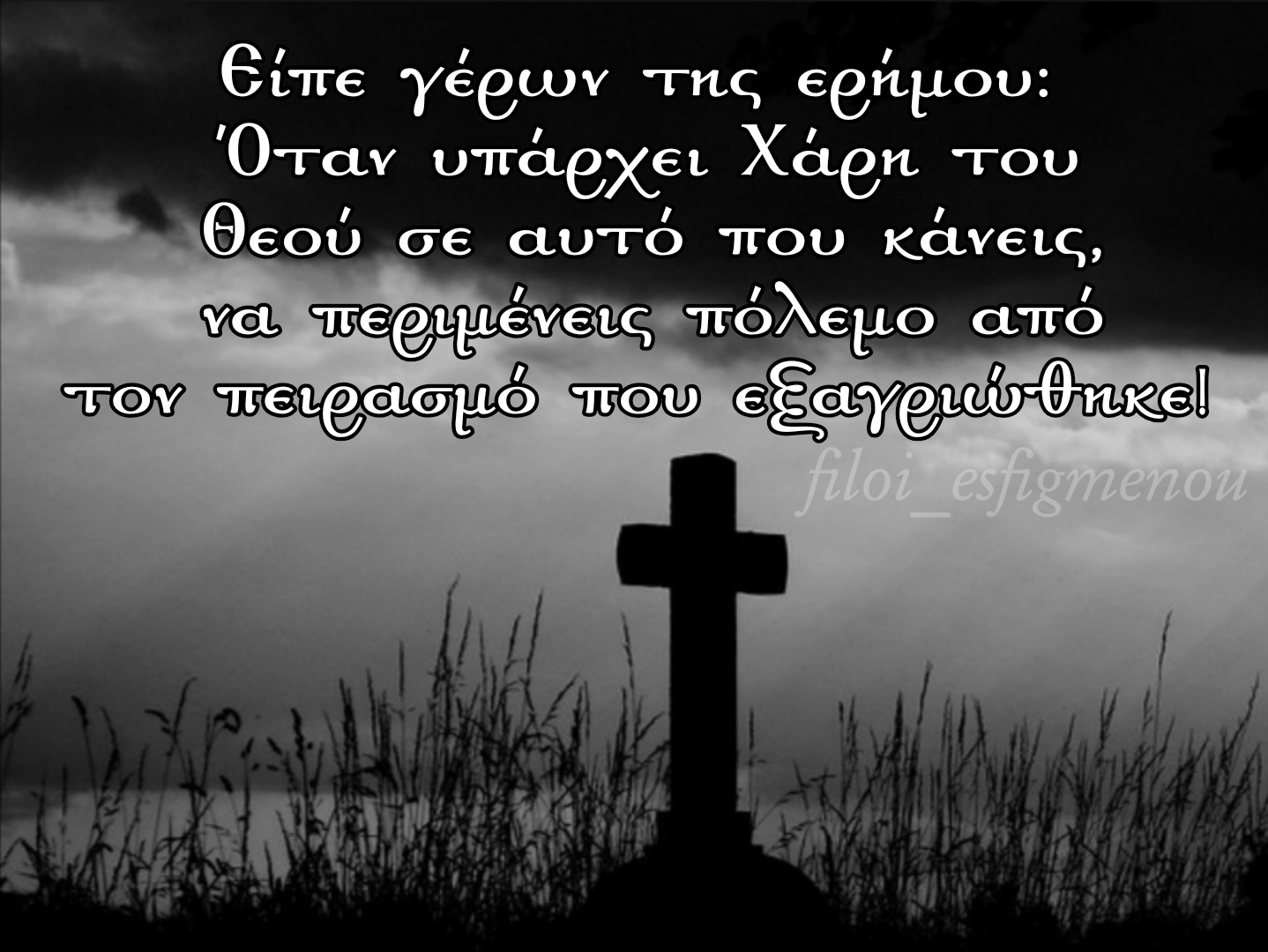 …Μα την ώρα που με δυσκολία το χέρι μου σήκωσα το χοϊκό για να σκουπίσω το δάκρυ μου, κάποιο χέρι, μια ζεστή αγκαλιά, μια λεπτή αύρα με άρπαξε και στέγνωσε τα δάκρυα των ματιών μου και δρόσισε το ταπεινό μου πρόσωπο. Όταν άνοιξα τους οφθαλμούς μου δεν είδα τίποτα, μόνο το τελευταίο θρόισμα της αγάπης Σου. Μα δεν ήταν το τελευταίο. Ήταν ένα μόνο ίχνος στην άμμο της Αιώνιας Αγάπης.