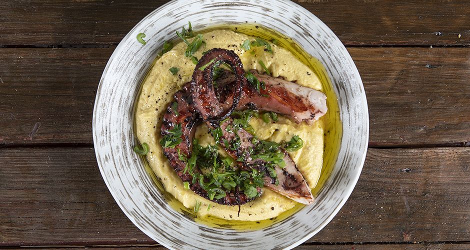Βάζουμε στα πλοκάμια 2-3 κ.σ. ελαιόλαδο και απλώνουμε σε όλη την επιφάνειά τους. Μεταφέρουμε στην γκριλιέρα και ψήνουμε για 2-3 λεπτά από κάθε πλευρά.