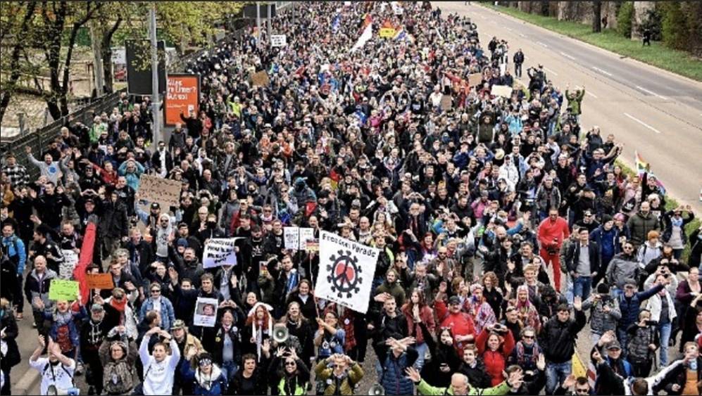 Χιλιάδες άνθρωποι συγκεντρώθηκαν χτες στη Στουτγάρδη για να διαμαρτυρηθούν για τα μέτρα, την ώρα που αναζωπυρώνεται στη Γερμανία η συζήτηση για την ενίσχυση των περιορισμών, λόγω του “τρίτου κύματος της πανδημίας”