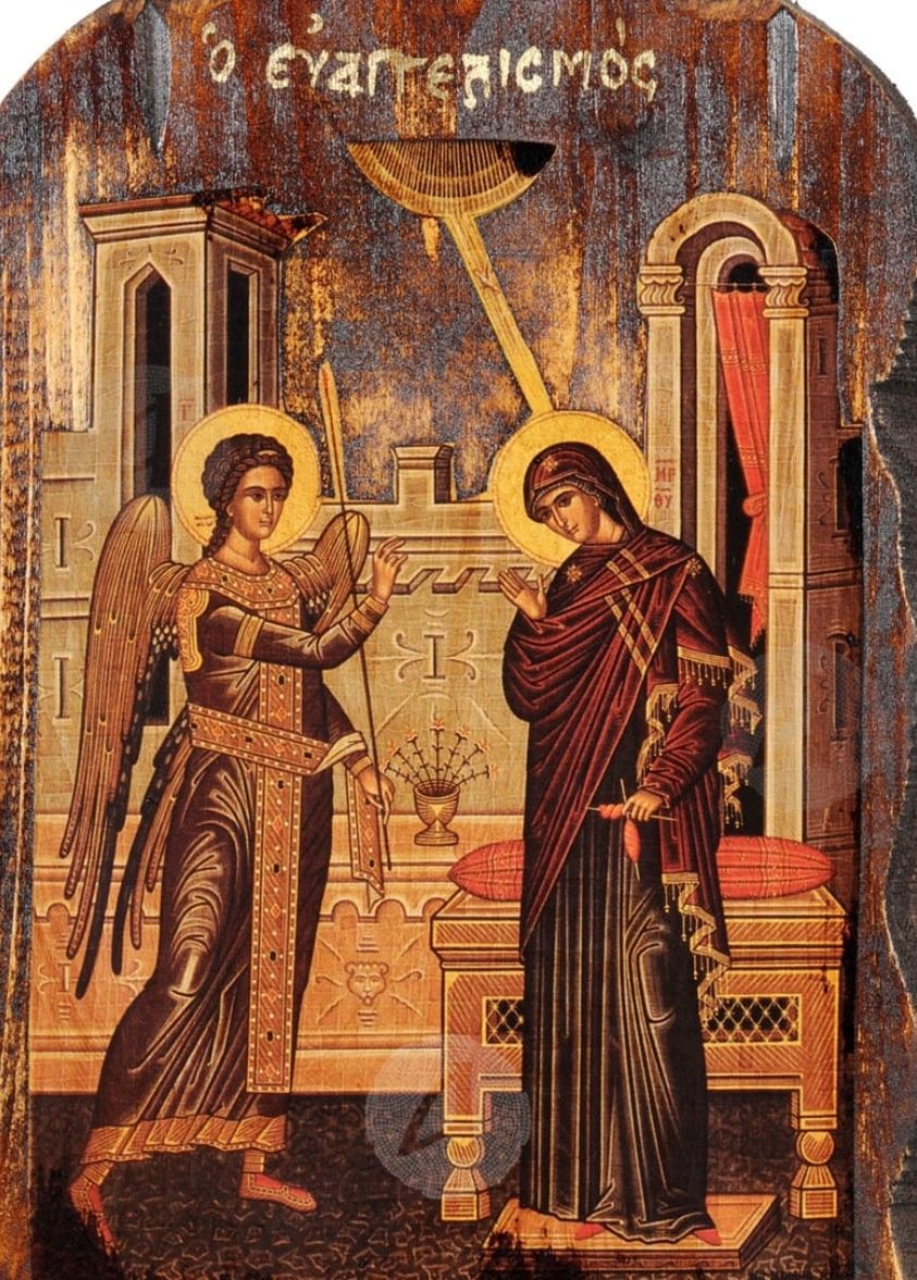 Παρουσιάστηκε λοιπόν ο αρχάγγελος στην Μαριάμ και της είπε ότι είναι ευλογημένη και χαρισματικά προικισμένη, περισσότερο από όλες τις άλλες γυναίκες. Εκείνη ταράχτηκε με τα λόγια του και δεν κατάλαβε τι πραγματικά ο απεσταλμένος του Θεού εννοούσε.