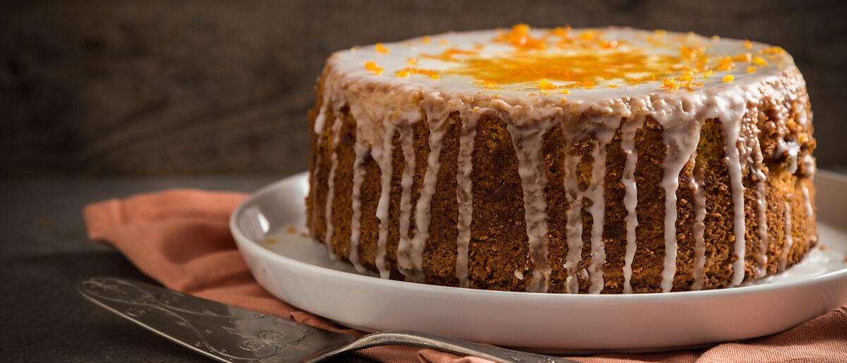 Κέικ νηστίσιμο με ταχίνι πορτοκάλι και γλάσο πορτοκαλιού