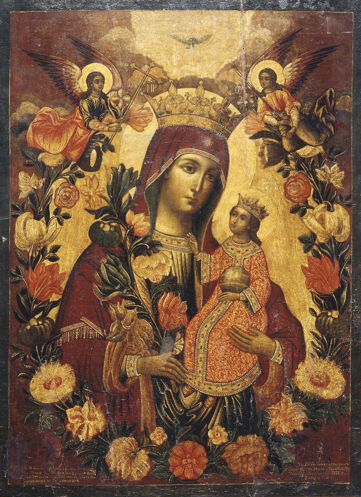 Η ιερά εικόνα της Παναγίας του Αμαράντου Ρόδου τιμάται στη Μόσχα, στο Βορονέζ και σε άλλες πόλεις της Ρωσίας, όπου φυλάσσονται αντίγραφα αυτής. Στην εικόνα η Υπεραγία Θεοτόκος κρατά το Θείο Βρέφος στο δεξί της χέρι και στο αριστερό της χέρι υπάρχει ένα μπουκέτο από κρίνους. Αυτό το μπουκέτο συμβολικά δηλώνει το αμάραντο άνθος της παρθενίας της Αειπαρθένου.