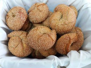 Παίρνουμε μικρά κομμάτια από τη ζύμη όσο ένα καρύδι και πλάθουμε λεπτά κορδόνια. Φτιάχνουμε μικρές κοτσίδες ή πλάθουμε στρογγυλά κουλουράκια και τοποθετούμε σε λαμαρίνα με αντικολλητική λαδόκολλα.