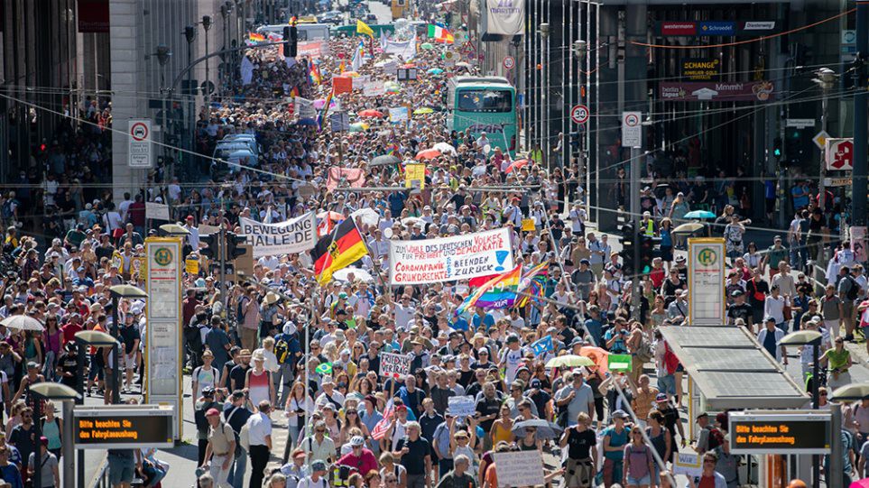 Στη σημερινή διαδήλωση, πάντως, ελάχιστοι διαδηλωτές εθεάθησαν να φορούν μάσκα, όπως επισημαίνει η γερμανική εφημερίδα «Tagesspiegel».