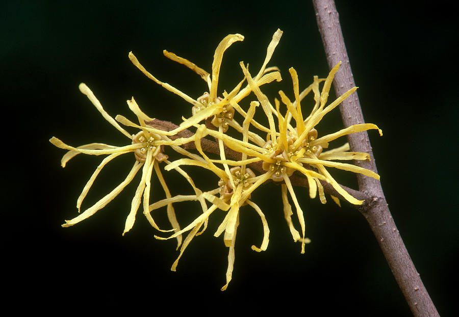 Τα άνθη του είναι κίτρινα και μοιάζουν σαν κουβάρι κίτρινων πετάλων με γλυκό άρωμα, τα οποία εμφανίζονται λίγο πριν το φυτό χάσει τα φύλλα του. Ο καρπός της σχηματίζει σπόρο που περιβάλλεται από λεύκωμα.