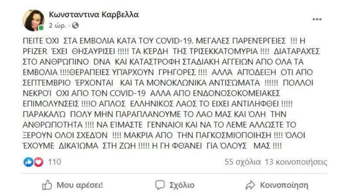Σε απολογία ενώπιον του προέδρου του Ιατρικού Συλλόγου Λάρισας στις 10 Ιουνίου καλείται η γυναικολόγος που καλούσε τον κόσμο να μην εμβολιαστεί.