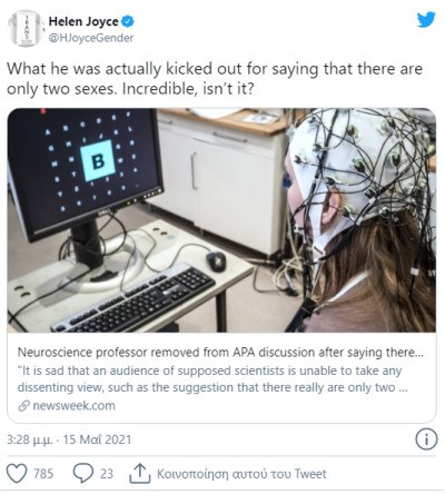 Η Αμερικανική ένωση Ψυχιάτρων απέβαλλε από τα μέλη της ένα Αμερικανό ψυχολόγο και νευρολόγο καθώς ισχυρίστηκε ότι υπάρχουν μόνο δύο φύλα στο ανθρώπινο είδος.
