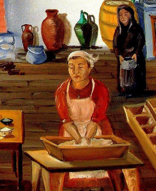 Σήμερα τα θυμήθηκε όλα ξανά,καθώς είδε κάτω από την πόρτα του σπιτιού της προσκλητήριο αγάπης,τυπωμένο χαρτί από τον εφημέριο της ενορίας της,που έλεγε:«Σήμερα κανένας να μη μείνει πεινασμένος στην ενορία μας.Βοήθησε και συ όσο μπορείς».Βούρκωσε!...Είναι και αυτή πνιγμένη στα χρέη,όμως το ψωμί στο φτωχό θα το δίνει και αυτή.Ζυμωμένο από τα δικά της τα χέρια.Κάθε μέρα θα το πηγαίνει στον καλό τους ιερέα,πού γνωρίζει καλά τα ανήμπορα σπίτια!...