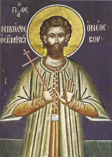 Ὡς ἀστὴρ νεόφωτος, λαμπρῶς ἀθλήσας, ἐν ὑστέροις ἔτεσι, τῇ Ἐκκλησίᾳ τοῦ Χριστοῦ, ἐδείχθης Μάρτυς Νικόλαε· διὸ γεραίρει τὴν θείαν σου ἄθλησιν.
