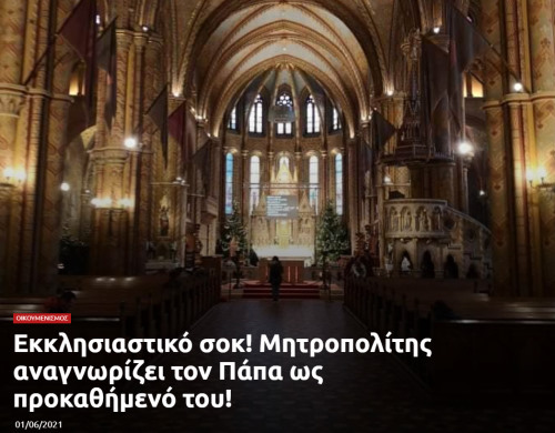 Εκκλησιαστικό σοκ! Μητροπολίτης αναγνωρίζει τον Πάπα ως προκαθήμενό του!