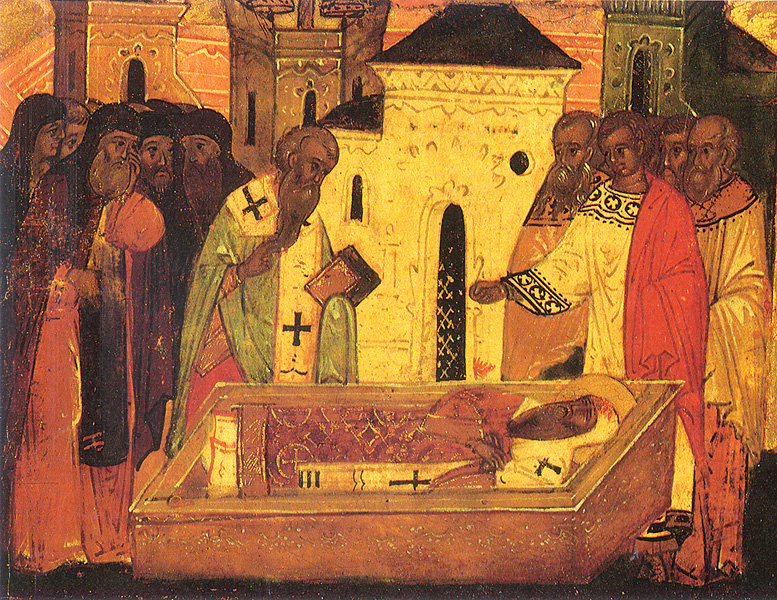 Τα ιερά λείψανά του, ανακαλύφθηκαν στις 20 Μαΐου του 1431 μ.Χ.. Το 1485 μ.Χ., τα ιερά λείψανα μετακομίσθηκαν σε ναό αφιερωμένο στον Άγιο. Σήμερα βρίσκονται στον Πατριαρχικό Ναό των Θεοφανείων της Μόσχας.