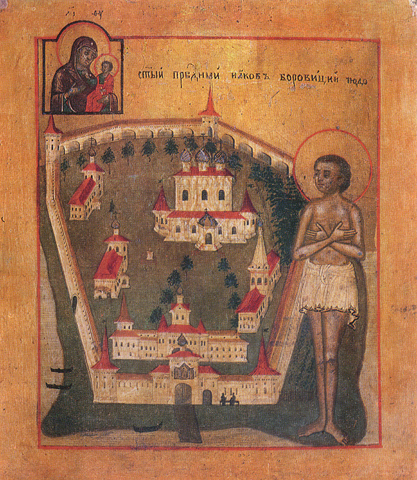Δεν υπάρχουν επαρκείς αγιολογικές πληροφορίες για τον Άγιο Ιάκωβο τον Δίκαιο, που καταγόταν από το Μποροβίτσι της περιοχής του Νόβγκοροντ, όπου και εργάσθηκε και έζησε κατά Θεόν. Τα ιερά λείψανά του βρέθηκαν την Τρίτη της Διακαινησίμου το 1540 μ.Χ. (η ανακομιδή των ιερών λειψάνων του Αγίου εορτάζονται στις 23 Οκτωβρίου).