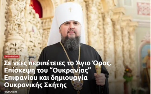 Ο σχισματικός ψευδεπίσκοπος της ψευδοεκκλησίας της Ουκρανίας Επιφάνιος αποκάλυψε σε τηλεοπτική συνέντευξη που παραχώρησε στο τηλεοπτικό κανάλι 5 канал της Ουκρανίας (ιδιοκτησίας του πρώην προέδρου της χώρας και ουνίτη Πέτρο Ποροσένκο), τα σχέδια του για επίσκεψη στο Άγιο Όρος στο εγγύς μέλλον και τη δημιουργία Ουκρανικής Σκήτης στο Περιβόλι της Παναγίας.