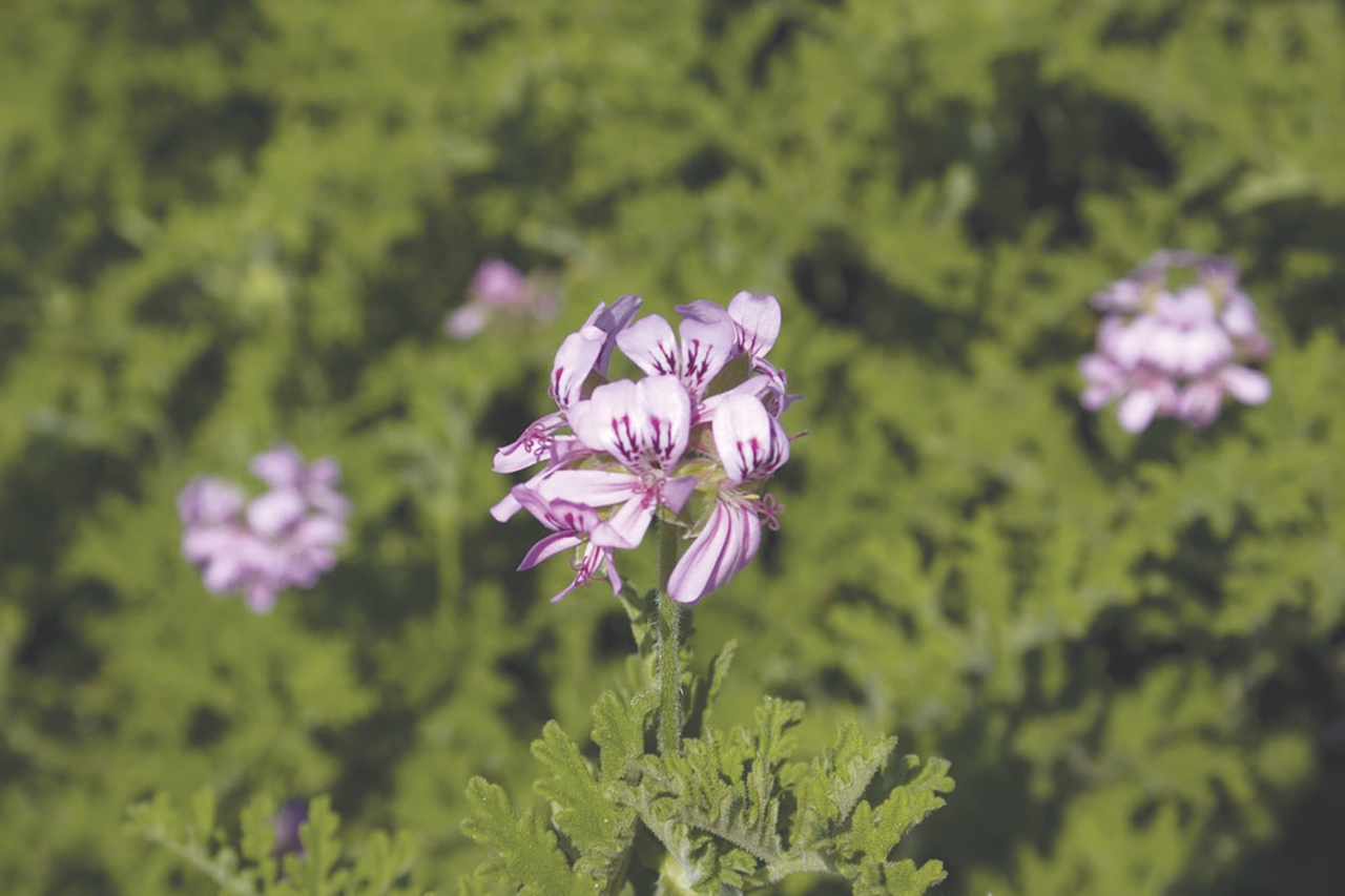 Είναι πολυετής πόα που φτάνει σε ύψος τα 50 έως 70 εκατοστά. Ο βλαστός παραμένει τρυφερός και όταν ακόμη πάρει χρώμα τεφρό – καστανό και σχηματίζει πολλές διακλαδώσεις. Τα φύλλα έχουν το χαρακτηριστικό άρωμα του πελαργόνιου, χρώμα ανοιχτό πράσινο, μήκος μέχρι τα 1ο εκατοστά με δαντελωτά χείλη.