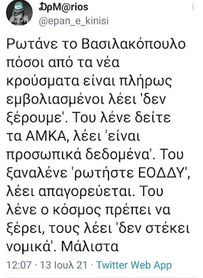 Πόσο μάλλον να μας πει για εμβολιασμένους νεκρούς από κορωνοϊό στην Ελλάδα…