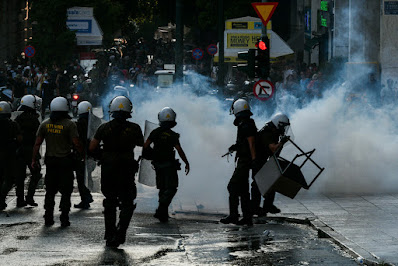 Οι νεο-αγαπούληδες, που σκίζονται για την υγεία μας, μέσ το καύσωνα τάραξαν στα χημικά το κόσμο, χωρίς να προκληθούνε.....Ψέκαζαν το κόσμο στα μούτρα και φθάσανε να ρίξουνε και χημικό σε καφέ, στη Βουκουρεστίου, σε άσχετους θαμώνες και δικηγόρος που σχεδόν το φαγε στη μάπα, σε έξαλλη κατάσταση νόμιζε ότι θα βρει δικαιοσύνη.....Στα μνημόνια είχανε διαλύσει συγκεντρώσεις με πάνω από 1 εκατ. κόσμο, δε θα κόλλαγαν εδώ...