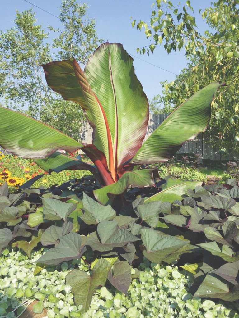 Το φυτό της μπανάνας είναι ψευδόστεμα που αναπτύσσεται έως τα 6 με 7 μέτρα ύψος. Τα φύλλα του φυτού είναι μεγάλα, εύκαμπτα και αδιάβροχα. Είναι διευθετημένα σπειροειδώς και είναι δυνατόν να φτάσουν τα 2,50 με 2,70 μέτρα μήκος και τα 60 εκατοστά πλάτος Χρησιμοποιούνται με πολλούς τρόπους, σαν ομπρέλες και για το τύλιγμα της τροφής με σκοπό το μαγείρεμα ή την αποθήκευση.