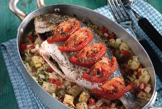 περίπου 1½ κιλό καθαρισμένο (φαγκρί ή συναγρίδα ή σκορπίνα κ.λπ.)