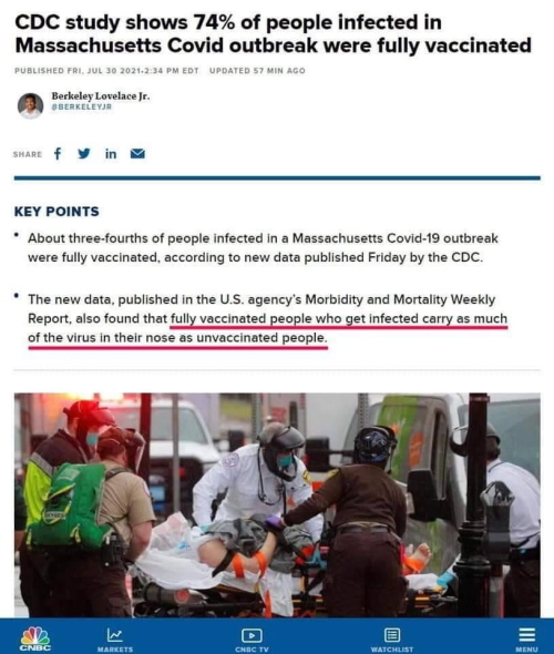 Αν σκεφτούμε ότι την 3η Ιουλίου οι πλήρως εμβολιασμένοι στην πολιτεία της Μασσαχουσέτης ήταν 62%, τότε το εμβόλιο όχι μόνο δεν εμποδίζει να κολλήσεις, αλλά το αντίθετο κιόλας!