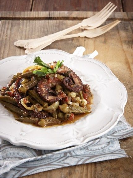 Χταπόδι με μπάμιες στο φούρνο