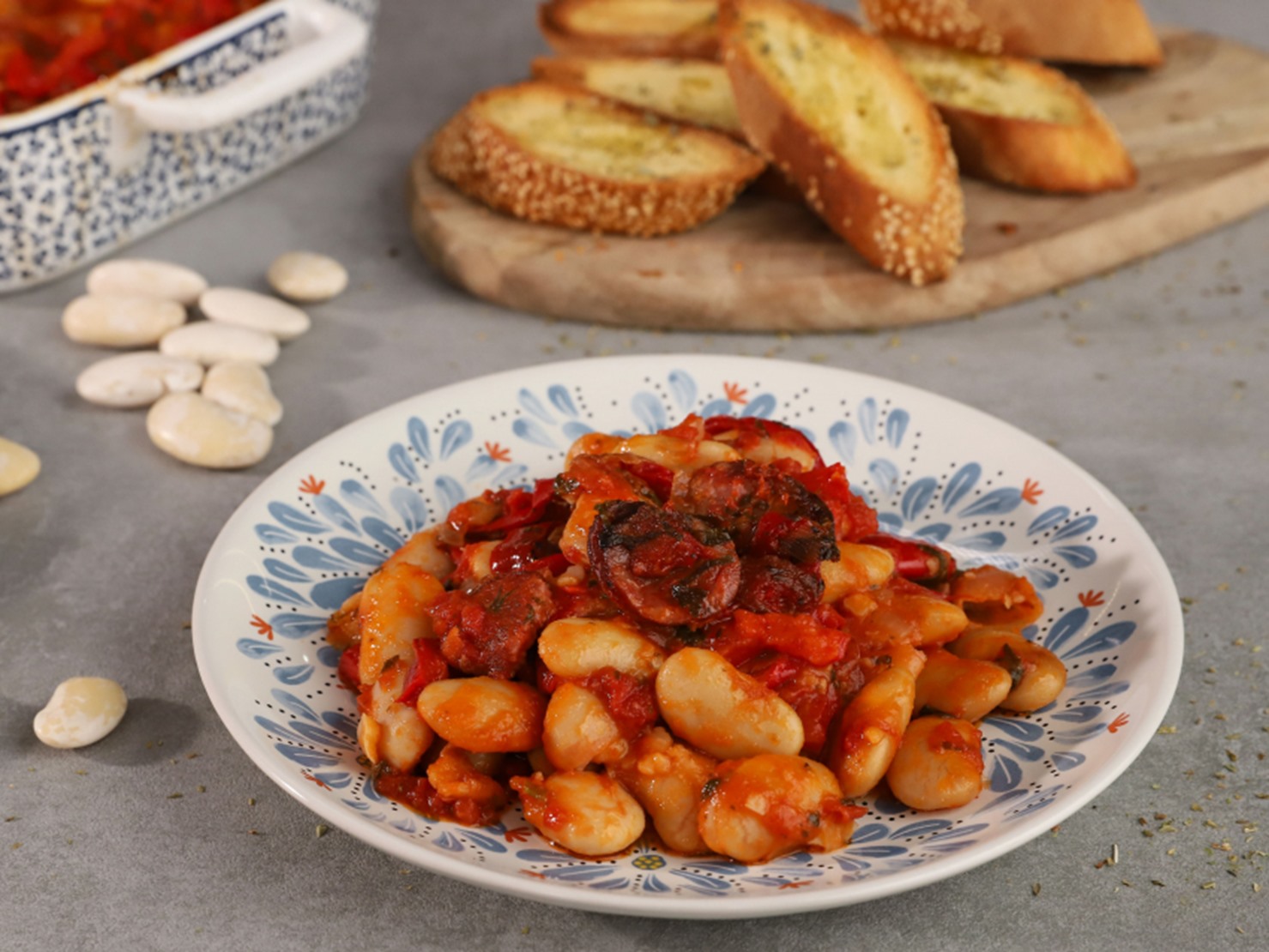 Πλένουμε τα φασόλια και τα μουσκεύουμε σε νερό τουλάχιστον για 6 ώρες.