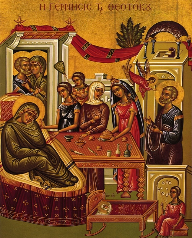 Ἀλλ᾿ ἐνῷ, ἀγαπητοί μου, ἡ Ἐκκλησία μας ἔχει ὡς κανόνα νὰ ἑορτάζουμε τοὺς ἁγίους τὴν ἡμέρα τῆς κοιμήσεως ἢ τοῦ μαρτυρίου τους, ὁ κανὼν αὐτὸς ἔχει τρεῖς ἐξαιρέσεις .Σὲ τρεῖς περιπτώσεις ἑορτάζουμε καὶ τὰ γενέθλια. Ποιά γενέθλια; Πρῶτον τοῦ Κυρίου ἡμῶν Ἰησοῦ Χριστοῦ (στὶς 25 Δεκεμβρίου). Δεύτερον τοῦ Ἰωάννου τοῦ Προδρόμου (στὶς 24 Ἰουνίου). Καὶ τρίτον τὰ γενέθλια τῆς ὑπεραγίας Θεοτόκου (σήμερα 8 Σεπτεμβρίου). Γιατί τὰ ὥρισε ἔτσι ἡ Ἐκκλησία; Πρῶτον διότι οἱ γεννήσεις τοῦ Προδρόμου καὶ τῆς Παναγίας προμηνύουν τὴ γέννησι τοῦ Χριστοῦ, ποὺ ἐσήμανε ὁριστικῶς τὴ σωτηρία τοῦ γένους τῶν ἀνθρώπων. Καὶ δεύτερον διότι ὁ μὲν Κύριος εἶνε ὁ Θεὸς ὅλων, ὁ Ἰωάννης ὁ Πρόδρομος εἶνε ὁ «μείζων ἐν γεννητοῖς γυναικῶν» (Ματθ. 11,11) ποὺ ἔρχεται νὰ ἑτοιμάσῃ τὸ δρόμο γιὰ τὸ Χριστό, ἡ δὲ Παναγία μας εἶνε ἀνωτέρα ἀνθρώπων, ἀγγέλων καὶ ἀρχαγγέλων· ἂν δὲν ἐγεννᾶτο ἐκείνη, δὲν θὰ ἐγεννᾶτο ὁ Χριστός.