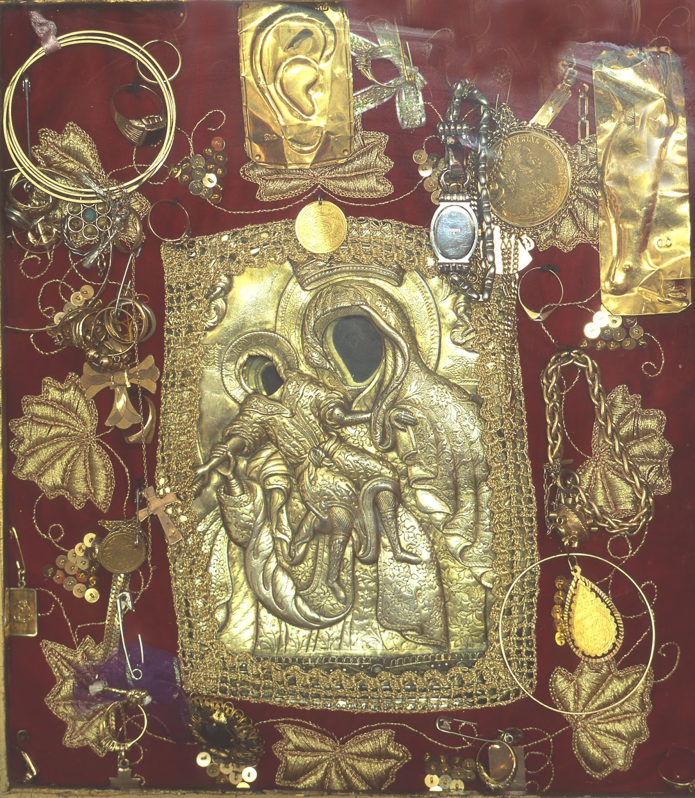 Ὡς πολυτίμητον θησαύρισμα Κόρη, τὴν σεαυτῆς θείαν μορφὴν Παναγία, δωρησαμένη ἅπαντας ἐπλήρωσας θυμηδίας Ἄχραντε, καὶ ἐπλούτισας θείας, χάριτος θαυμάτων σου, καὶ ἐμύρισας μύρῳ, τοὺς σοὶ βοῶντας· χαῖρε εὐσεβῶν ἡ προστασία, καὶ κόσμου ἡ Δέσποινα.