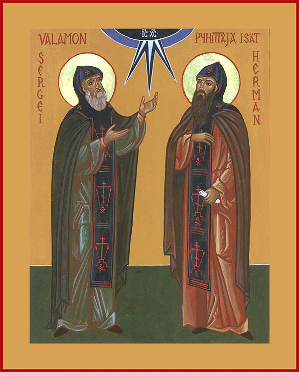 Σήμερα η Εκκλησία μας εορτάζει την Ανακομιδή των Ιερών Λειψάνων των Οσίων Πατέρων Σέργιου και Γερμανού «τῶν ἐν Βαλάμῃ θαυματουργῶν ἐκ τῆς Νοβαγράδας (Νεαπόλεως) ἐπιστραφέντων εἰς τὴν ἐν Βαλάμῃ Ἱερὰν αὐτῶν Μονήν».