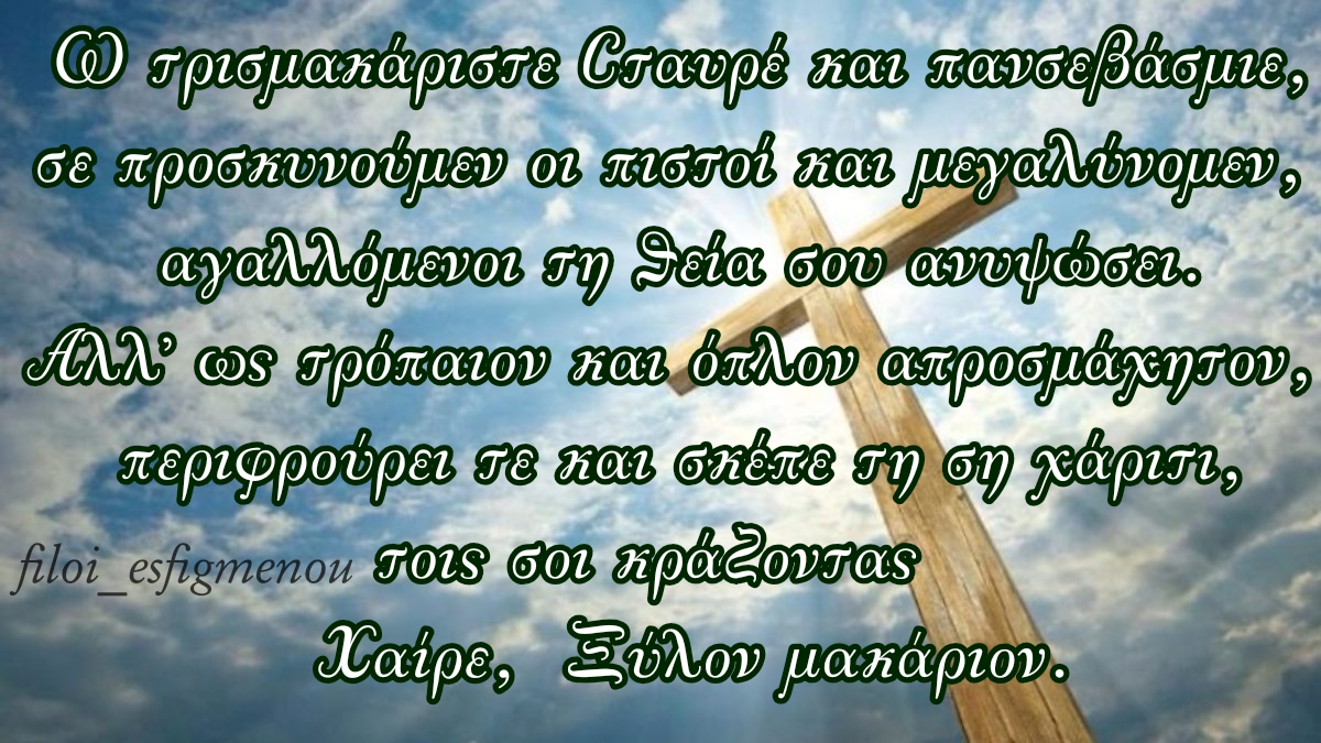 Από την ήμερα αυτή, καθιερώθηκε να γιορτάζουμε στην Εκκλησία μας την Ύψωση του Τιμίου Σταυρού. Η Αγία Ελένη έπειτα πήρε τον Τίμιο Σταυρό μαζί της στην Κωνσταντινούπολη, αφού όμως άφησε μέρος αυτού στα Ιεροσόλυμα, στον Πατριάρχη Μακάριο.