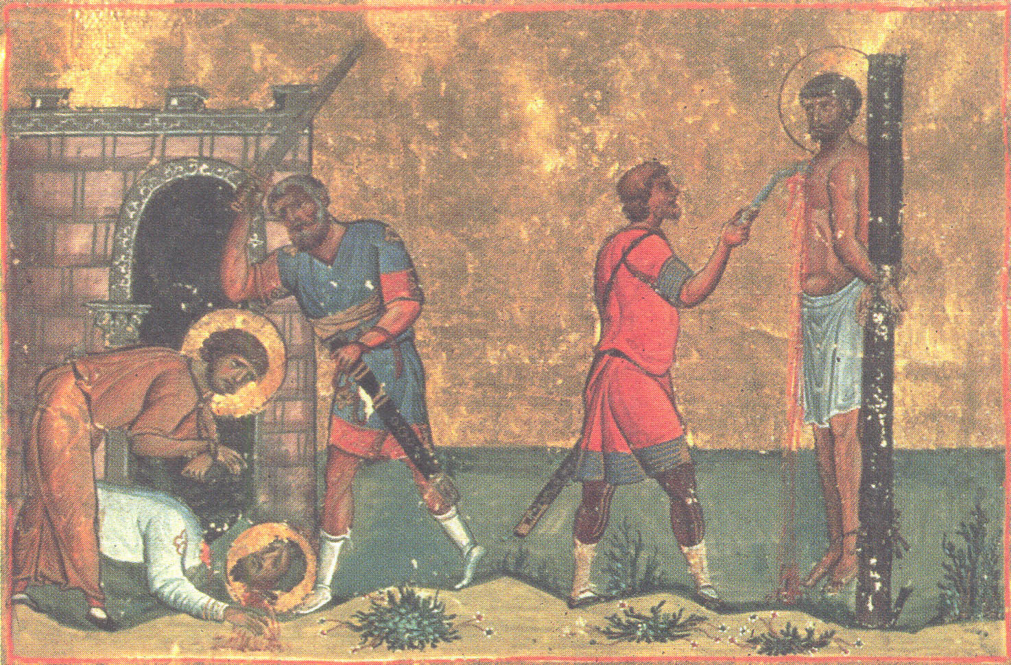 Τῶν Ἁγίων Μαρτυρων τὰ ἔπαθλα, οὐρανῶν αἱ Δυνάμεις ἐθαύμασαν, ὅτι σῶμα θνητὸν περικείμενοι, ἀσωμάτους ἐχθροὺς ἐτροπώσαντο, Σταυροῦ τῇ ἰσχὺϊ κρατυνόμενοι· ὅθεν μακαρίζονται εἰς αἰῶνας, ἱλασμὸν τῶν πταισμάτων αἰτούμενοι ὑπὲρ πάντων ἡμῶν· καὶ γὰρ τιμῶνται αὐτοί, ὡς ἀήττητοι.