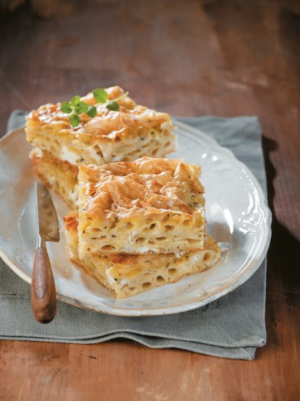 Η μακαρονόπιτα αποκτά άλλη γευστική διάσταση με την προσθήκη του καπνιστού χαρακτήρα του μετσοβόνε.