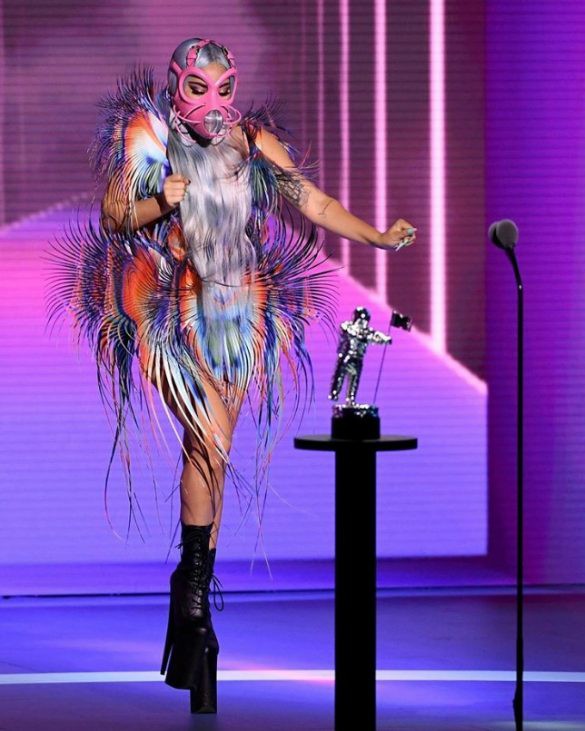 Χθες το βράδυ συνέχισε την προπαγάνδα της – κατά κάποιο τρόπο – εικονικά, από την Νέα Υόρκη, καθώς η Lady Gaga, κατάφερε να αποσπάσει 5 βραβεία, φορώντας 9 διαφορετικά σύνολα και φρικαλέες μάσκες. Ενώ από σατανιστικά σύμβολα, αυτά είναι πλέον must στην βιομηχανία θεάματος των αμερικανοσιωνιστών: