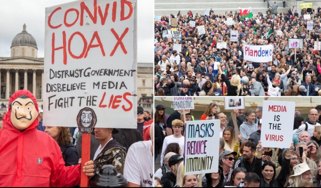 πάνω από δέκα χιλιάδες αρνητές του ιού μαζεύτηκαν στην πλατεία Τραφάλγκαρ του Λονδίνου παρά τα περιοριστικά μέτρα που ισχύουν στην πρωτεύουσα της Βρετανίας.