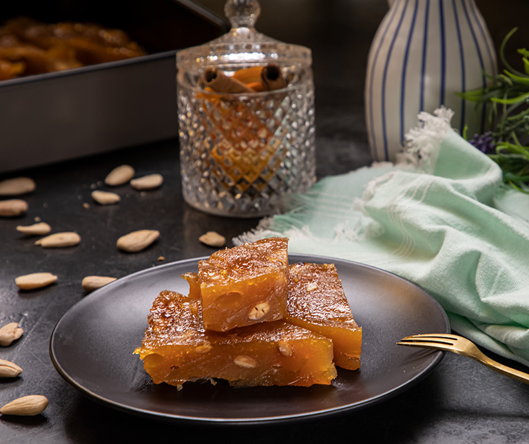 Ο χαλβάς φαρσάλων κόβεται σε κομμάτια αφού κρυώσει καλά.
