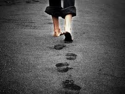παρατηρούσε δύο ζευγάρια χνάρια πάνω στην άμμο: ένα που ήταν δικό του και το άλλο του Θεού.